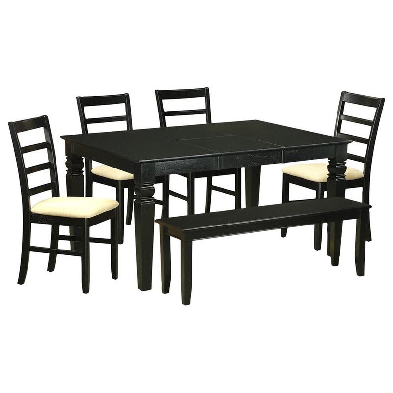 -Package Includes: 6 piece Weston Rectangular Dining Table with 18in butterfly Leaf and four Parfait Dining Chair With Microfiber Seats plus a bench