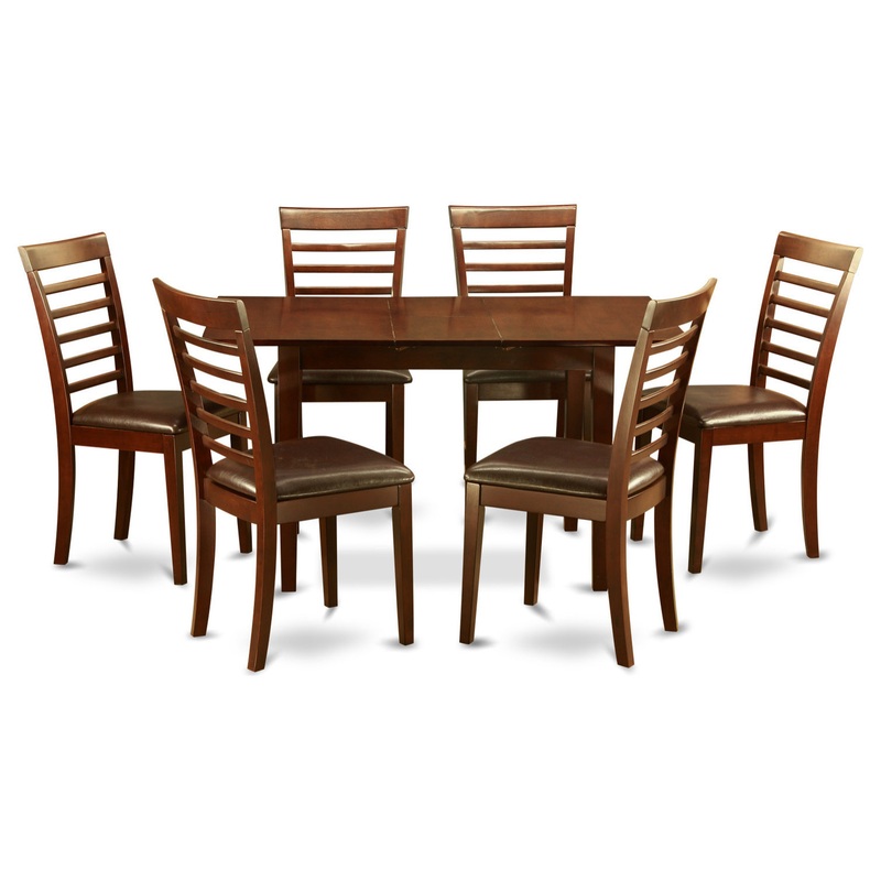 -Norfolk 7 piece set with rectangular table featured 12 in leaf and 6 faux leather seat chairs