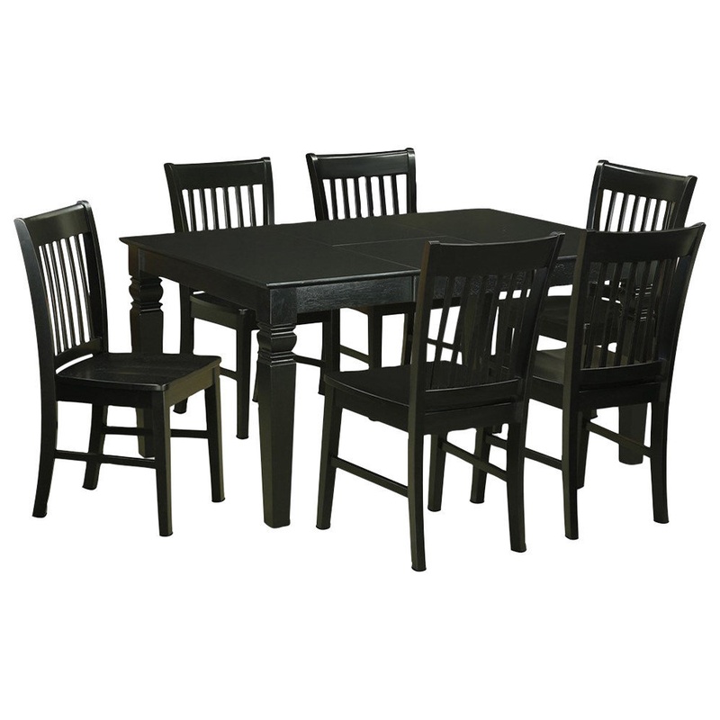 -Package Includes: 7 piece Weston Rectangular Dining Table with 18in butterfly Leaf and 6 Norfolk Dining Chair With Wood Seats.
