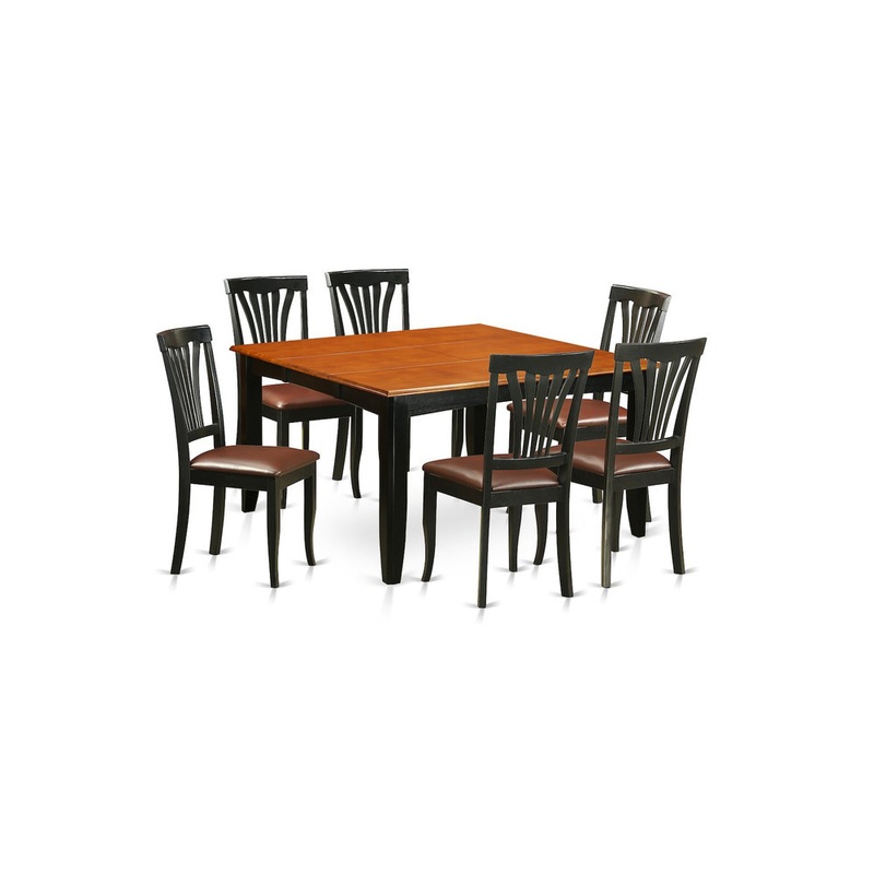 -Package Includes: This 7 piece dining set Includes dining table and 6 faux leather seat dining room chairs finished in Black and Cherry