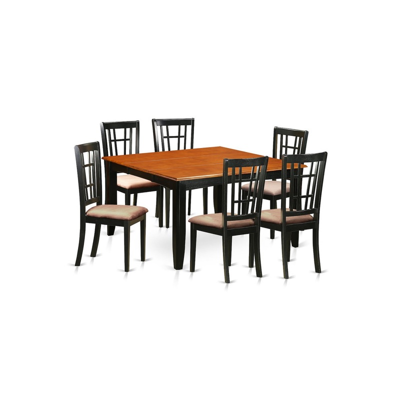 -Package Includes: This 7 piece dining set Includes dining table and 6 microfiber seat dining room chairs finished in Black and Cherry