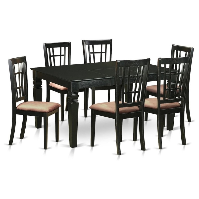 -Package Includes: 7 piece Weston Rectangular Dining Table with 18in butterfly Leaf and Six Nicoli Dining Chair With Microfiber Seats.
