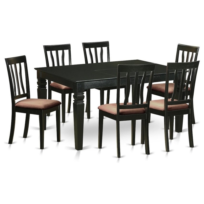 -Package Includes: 7 piece Weston Rectangular Dining Table with 18in butterfly Leaf and Six Antique Dining Chair With Microfiber Seats.