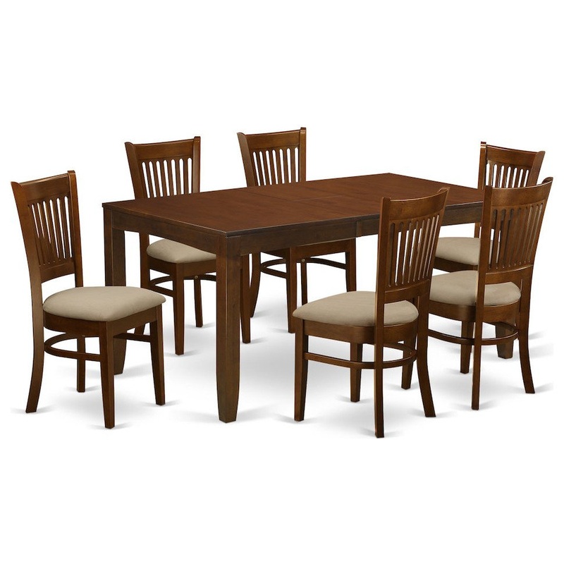 This valuable rectangle-shaped dinette table comes with a stable, design and a dazzling Espresso finish well-suited to any type of decor style.The kitchen table set includes 6 good looking slat back kitchen dining chairs provide the most cozy model. Plush and warm, the microfiber upholstery seat supplies the excellent degree of relaxation and support for long, fun-filled daily meals and gatherings. an extension centre leaf will allow the best in convenience for homeowners who love to set up smaller sized, intimate dinners and also full-out family affairs.The solid, squared wooden legs of this excellent dining room table deliver more support when adding to a wide variety of decoration themes.