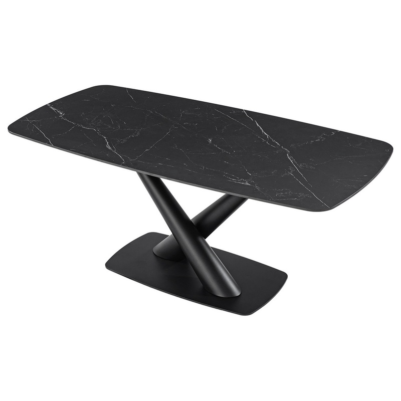 Presenting the contemporary dining table, combining style with functionality for your dining space. Its anti-fouling, easy-to-clean surface ensures that spills and messes are effortlessly dealt with, making cleanup a breeze after meals. Crafted from scratch-resistant and heat-resistant materials, the tabletop is designed to withstand everyday use and high temperatures, ensuring durability and longevity. The artificial marble finish adds an elegant touch to your dining area, creating a sophisticated atmosphere for meals and gatherings. Supported by a sturdy crossed metal base, this table offers stability and enhances the modern aesthetic of your home decor. Whether you’re enjoying family dinners or entertaining guests, this modern dining table seamlessly blends style and convenience for a dining experience that’s both enjoyable and effortless.