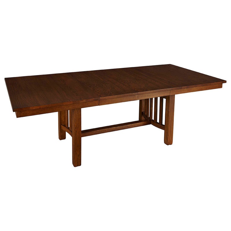 A-America Laurelhurst 92" Rectangular Trestle Table With 16" Self-Storing Leaves, Mission Oak Finish. The laurelhurst dining collection embodies the essence of the American arts and crafts movement. Crafted from solid American red oak and finished in a 12-
