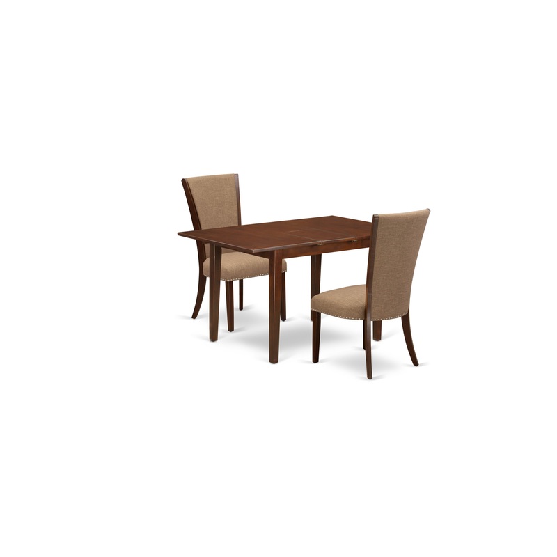 -This kitchen dining table set attributes comfy Linen Fabric Light Sable color, the body of these indoor dining chairs and the gorgeous wooden dining table is built from high quality Mahogany finish wood, which creates the best choice quality color combination to give a luxurious gaze to your kitchen.