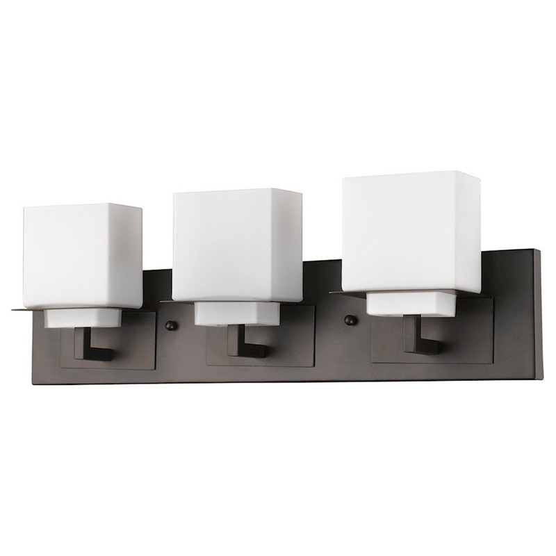 Rampart Combines Sharp Lines And Angles With Layered Square Shades. Available In Satin Nickel And Oil-Rubbed Bronze. A Handsome Design For An Updated Bath. -Part of the Rampart Collection -Finish: Oil Rubbed Bronze -Base Made of Steel -Shade Color: White R