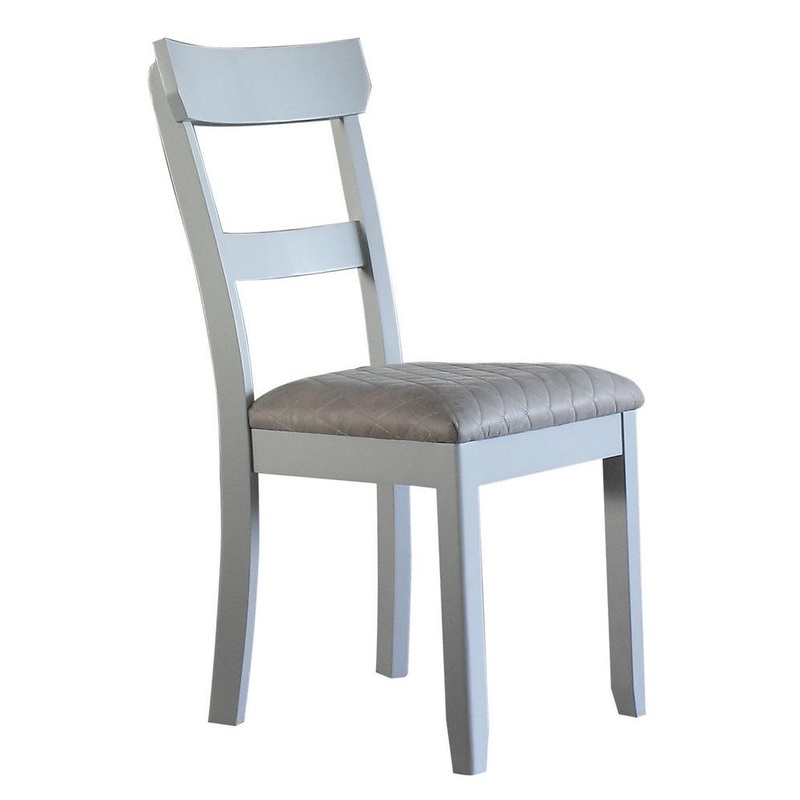 House Marchese Collection by Acme Furniture Pearl Gray finish Ladder-back design Diamond grid pattern on fabric upholstery Slat across the back of chair Made from Rubber Wood, MDF - Medium-Density Fibreboard Sold in set of 2