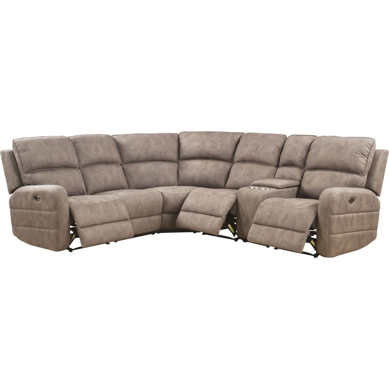 Olwen Collection by Acme Furniture Mocha Nubuck finish Sectional (Power Motion & USB) "L" Shape Console with Cup Holder & Storage 2 USB Charging Docks (External Push-Button) Power Motion Reclining Mechanism with OKIN Motor 3 Reclining Seats (RF/LF & 1 Arml