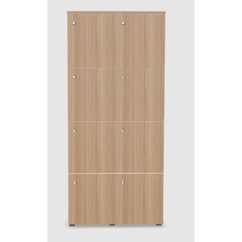 DescriptionLocker StorageMade in Spain by Actiu8 CompartmentsSpecificationsDimensions (HxWxD) Cm177.7x80.3x42.2Door With HingesYesKey LockYesFinishChestnut Oak