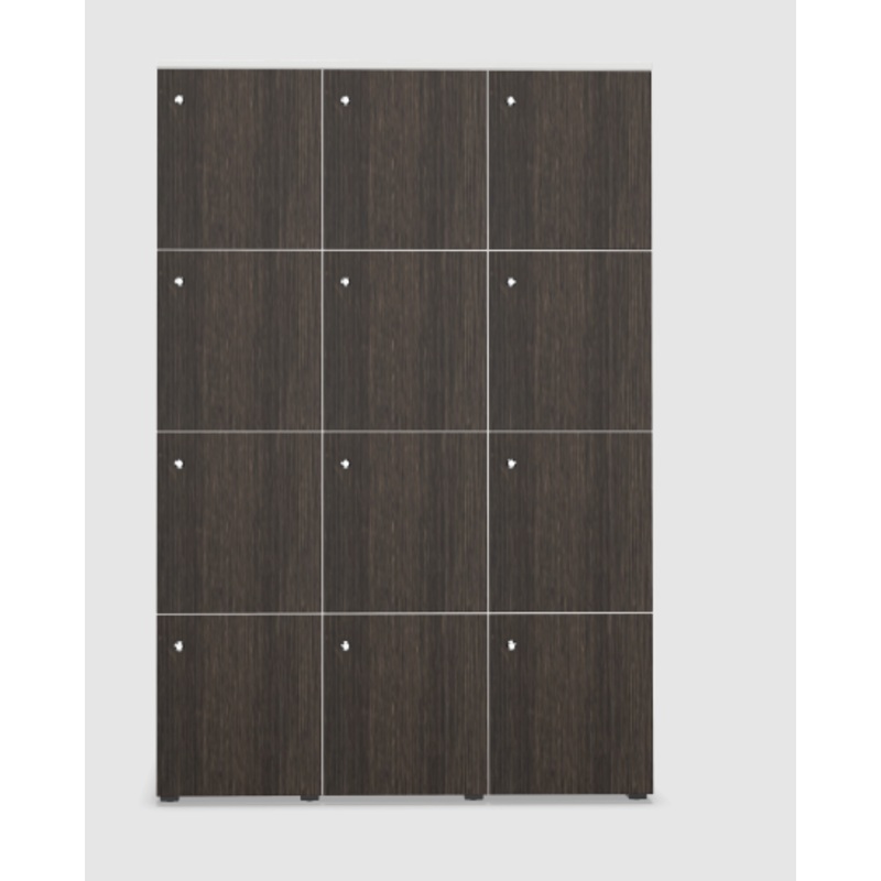 DescriptionLocker StorageMade in Spain by Actiu12 CompartmentsSpecificationsDimensions (HxWxD) Cm177.7x120.3x42.2Door With HingesYesKey LockYesFinishDark Oak