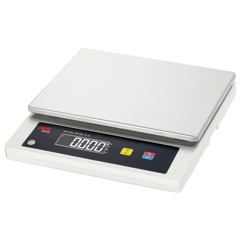 Lieferumfang:ADE Kompaktwaage PWI30Technische Daten:Wgebereich: 30 kgZiffernschritt: 1 g fr nicht eichpflichtige Wgungenmit groem, deutlich ablesbarem LCD Displaymit hinterleuchteter Anzeigestabiles KunststoffgehuseWgeplattform aus Edelstahl 260 x 215 mmun