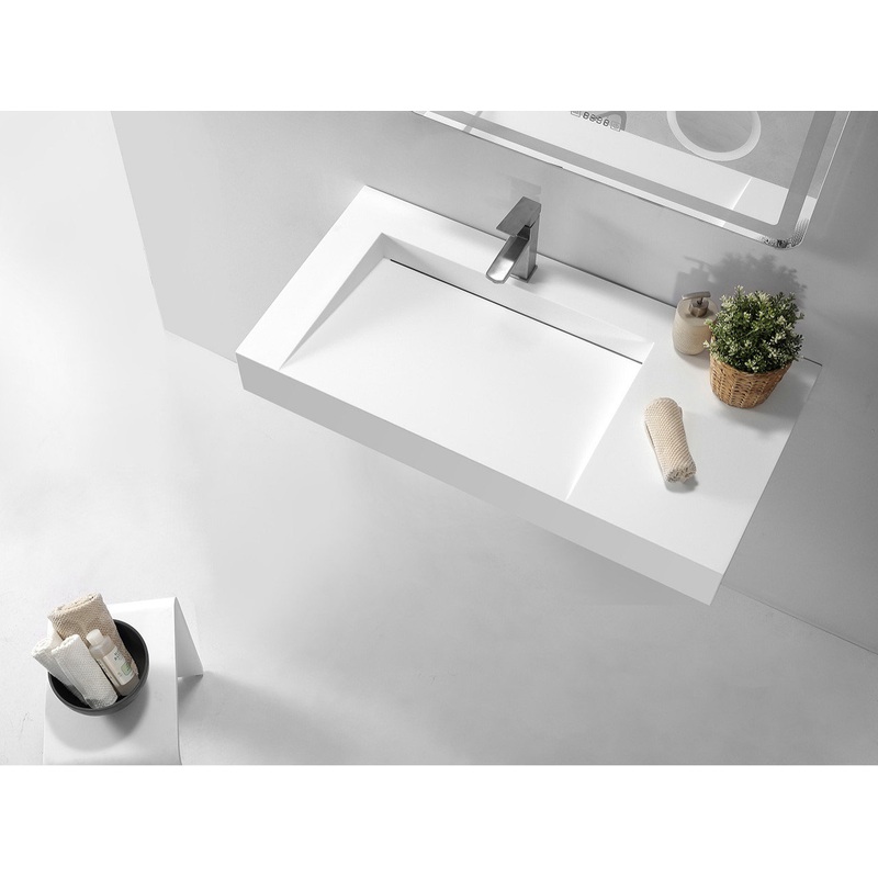 Made of durable white stone resin composite with a modern style design and its pinnacle of being smooth, the DW-110 countertop sink is a rectangular shaped design model within the ADM Bathroom Design sink collection. The stone resin material comes with the option of matte or glossy finish. This wall or counter mounted sink will surely be a great addition with a neat and modern touch to your newly renovated stylish bathroom.