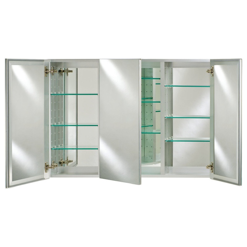 -Frameless, Beveled or Polished Edge -3 Mirror Design -Satin Gray Anodized Aluminum Construction (will not rust or corrode) -3/8" High Polished Tempered Glass Shelves -6 way adjustable Euro Hinges -Recessed or OPTIONAL Surface Mount KitModel # (MPN)TD3630R