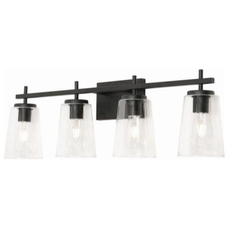 Take your modern guest or master bathroom space toJoanna 4 Light Bath Black White GlassUL: Suitable for damp locations Energy Star Qualified: n/a ADA Certified: YES *Number of Lights: 4-*Wattage:60w Incandescent bulb(s) *Bulb Included:No *Bulb Type:Incandescent *Finish Type:Black