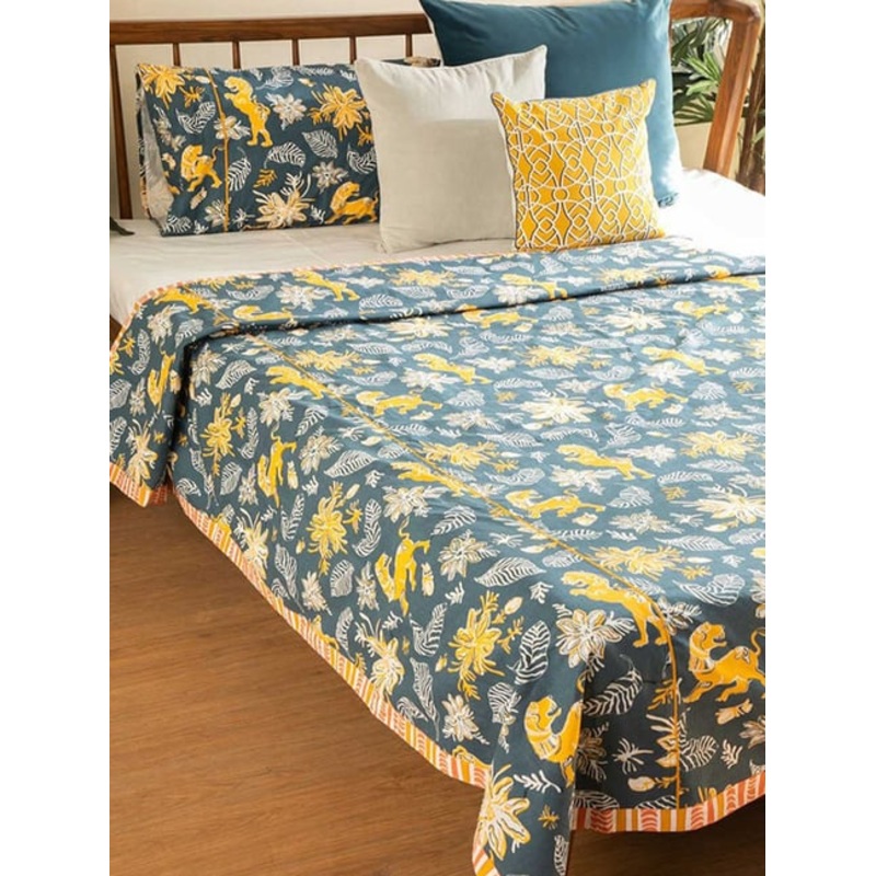 GR4670179111Ahnan Pure Cotton Blue Double Bedcover