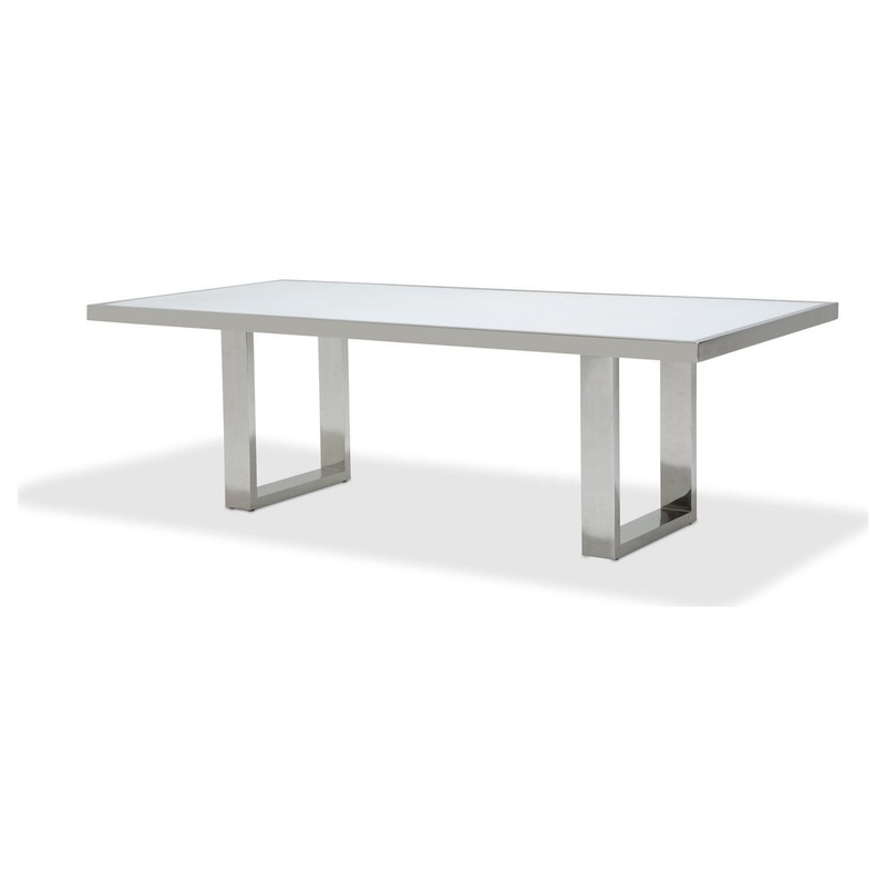 DescriptionContemporary has never been more beautiful & versatile. This State St. Dining Table is perfect for the modern home that shines with thoughtful details, whether glam or minimal. Serve lunch on the glossy white tabletop trimmed with stainless stee