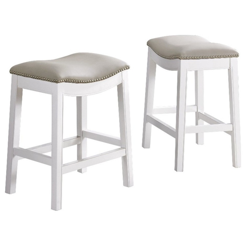 Add a touch of style to your home with these classic counter height stools. The legs are made from rubberwood for extra durability. The backless saddle seat is lined with nail head trim, while cushioned padding provides extra support when you need it most.