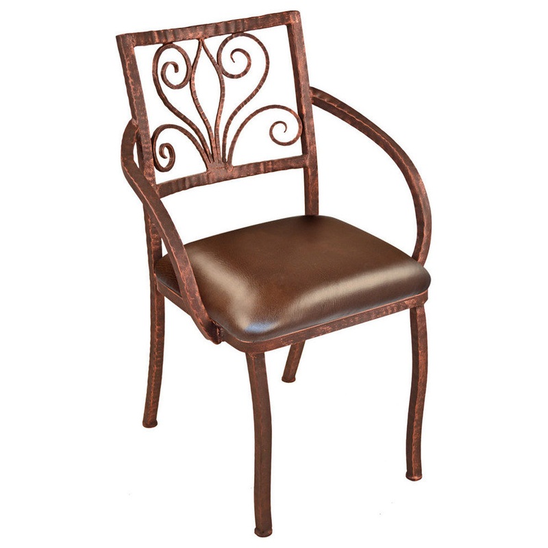 Alexander Chair brings to your home old world charm, featuring hand forged scrolls and classic design. This chair is for comfortable seating with real leather seat and side arms. Our heavy texture insures the mark of hand craftsmanship.