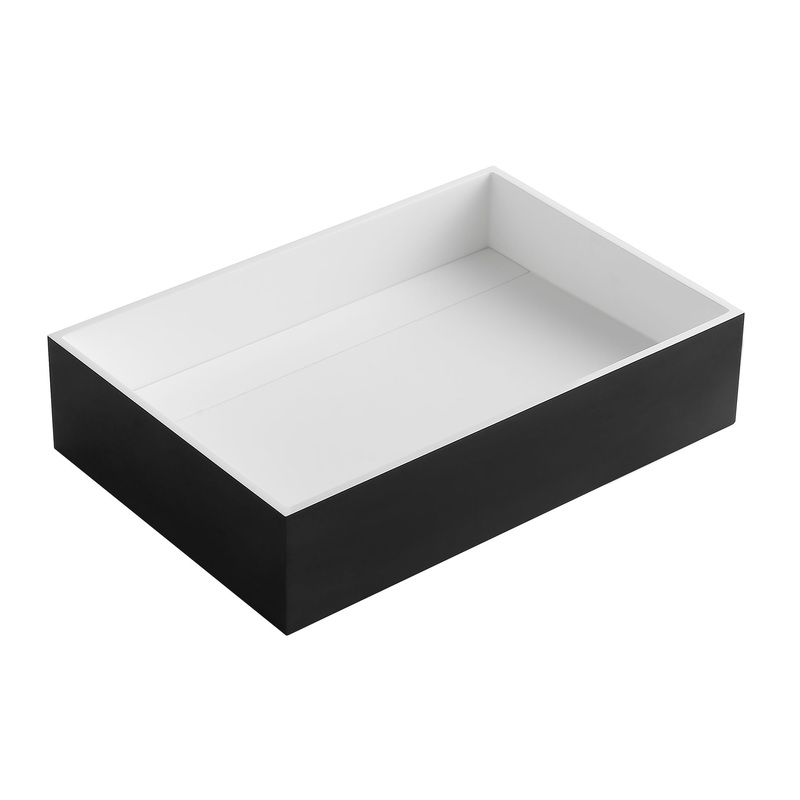 -Made of smooth resin composite material with a matte finish that feels like satin to the touch.The durable surface of this sink makes it extremely resilient to scratches and stains. However if any imperfection occurs on the inner white part, it can easily be removed using extra fine sand paper.