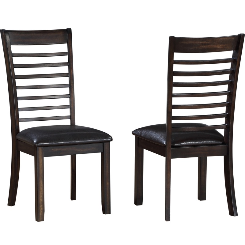 The comfortable, contemporary design of the Ally Dining Side Chair welcomes everyone to your home. This chair features a contemporary ladderback design with a dark brown polyurethane upholstered seat for added comfort and cleanability. Pair with the matching Ally Dining Table (for purchase separately) or use with your existing dining table. Your purchase includes two dining side chairs.