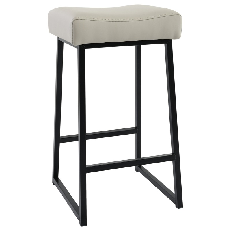 A Sleek frame and Vegan leather padded upholstery give this counter stool modern industrial look that suits any setting. Makes this piece an eco-friendly choice for any home or office. -Stone Grey -Vegan Leather/ Iron legs -Seat Height 26 inches -Foot rest