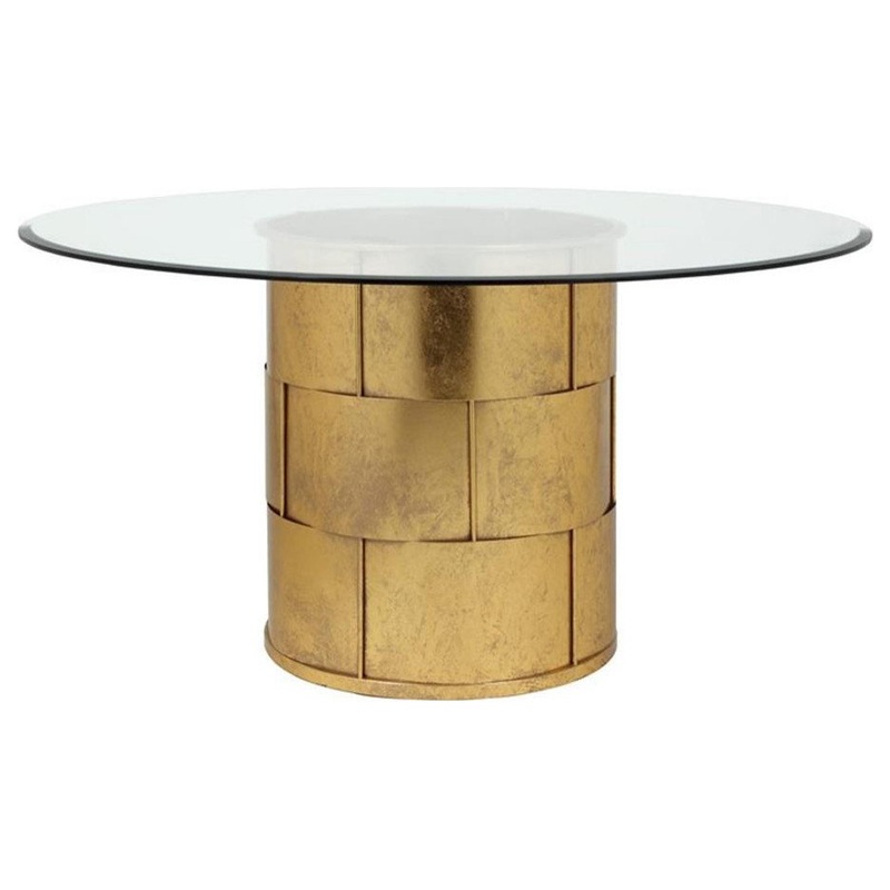 This dining table has a high-quality, hand applied gold or silver leaf coating that will instantly become the centerpiece of any room. Also features glass with a beveled edge. No assembly required. Features: -Material: Steel metal, tempered glass -Finish: