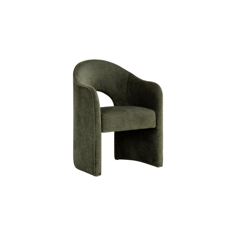 The appealing curves of the Anaya Dining Armchair will cradle you in exquisite comfort. Crafted with a beautiful arched silhouette that will add elegance to a dining table. Fully upholstered in our gorgeous bergen olive fabric for a versatile seat that can also be used as an accent chair.