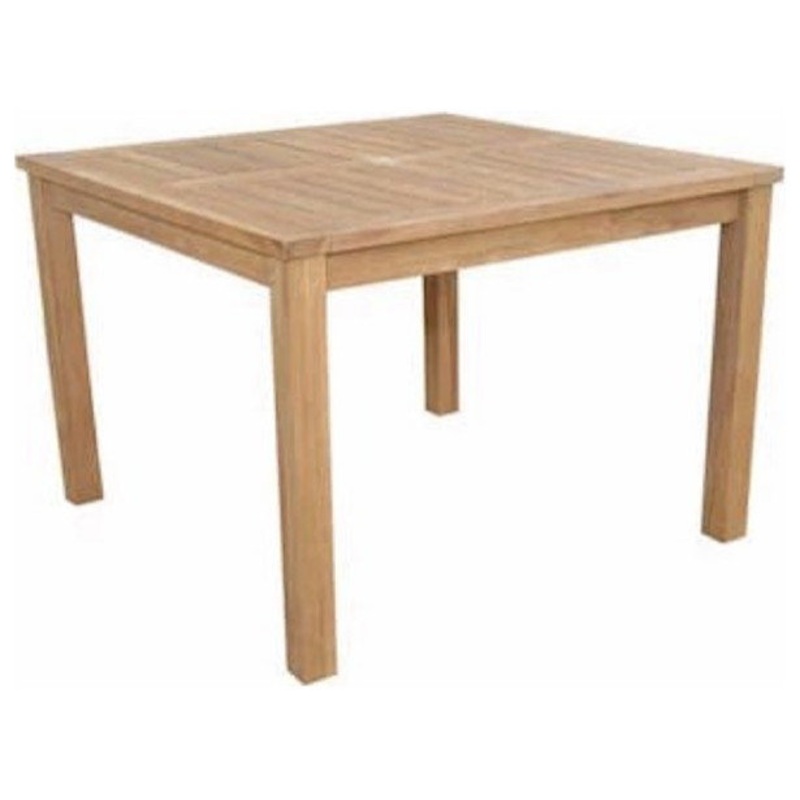 The Montage 42″ Square Dining Table is a spacious and quality built outdoor dining table that accommodates up to four people. The table is perfect for intimate dining or outdoor parties and gatherings. Table arrives with 2″ umbrella hole with brass plug when not in use. The table comes knock down and easy to assemble. Made of solid teak wood treated in a waterbased sealer, it is the perfect material for weathering the outdoors.