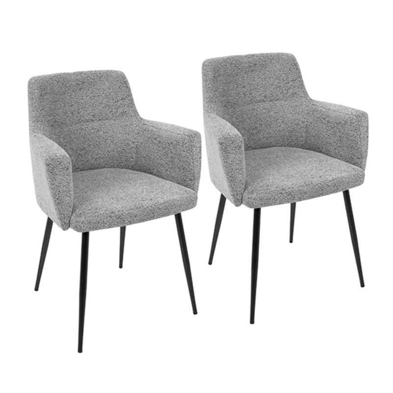 -Andrew Contemporary Dining/Accent Chair in Black with Grey Fabric – Set of 2