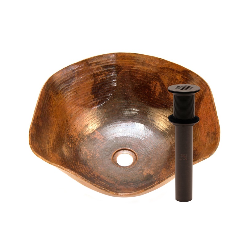 The Andulusia is a unique rippled vessel constructed from recycled copper by Novatto’s master artisans in Mexico. Through years of experience passed down from previous generations, the end result is a one-of-a-kind masterpiece. Made from extra thick 14-gauge copper, the Andulusia has a natural finish. Copper has a soft luxurious look and is amazingly easy to maintain. Fingerprints do not show as they will on stainless steel and other metals. For basic cleaning, simply use soap and water. Copper has a “living finish” and its patina will continue to develop character over time, meaning it will usually become a richer, darker color. The patina creates a unique look of complimenting dark tones. Due to the handcrafted nature of this sink, it will vary in appearance, finish, texture, and hammering. Also the dimensions may vary up to 1/2-inch. We strongly suggest you receive the actual piece before making any installation cuts. Included with the sink is Novatto’s 19 hole strainer drain (STD-ORB), constructed of solid brass for strength and durability. Finished in oil rubbed bronze, the drain assembly has two rubber seals, a plastic spacer, and brass fastener. Made with the highest standards of quality and creative design, Novatto sinks add artful function and charm to any bathroom. Just add water and enjoy Novatto’s lifetime limited warranty. Supreme packaging and boxing ensure damage-free delivery.