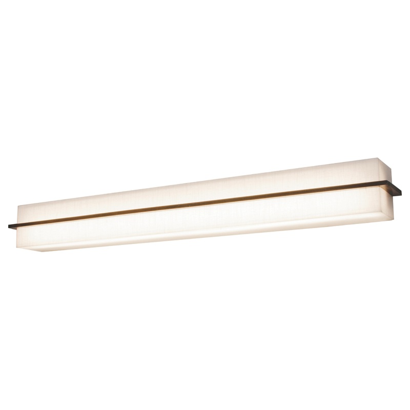 -Solid wood accent bars grace this contemporary LED Vanity. Features LumaFuse laminated fabric/acrylic shade that is durable and easy to clean. White bottom and top acrylic diffuser disperses the light. Available in two finishes and three sizes.