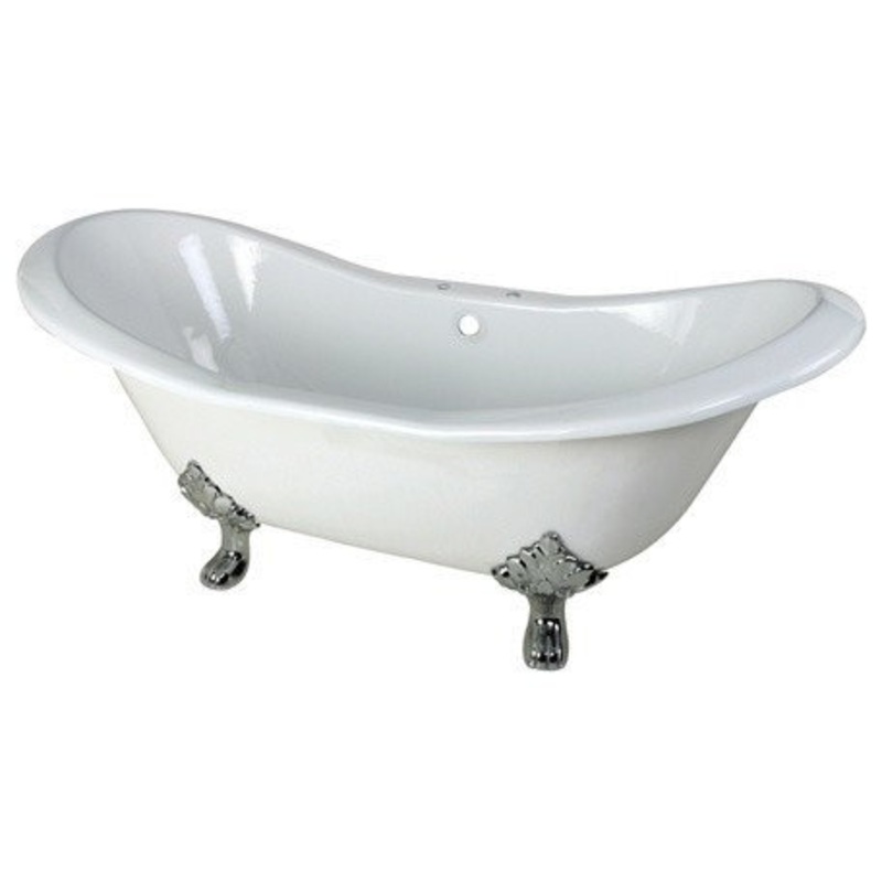At a long 72 inches and with nearly 60 gallons of water capacity, this double slipper cast iron clawfoot tub is the perfect way to enjoy a bath. With a set of beautifully detailed Lion Paw tub feet in a Polished Chrome finish, this tub will surely be the centerpiece of your bathroom. With 7 faucet drillings, the tub filler can be directly mounted on the tub rim for easy access and use. This sloped backs of the double slipper design allows for comfortable usage from both ends of this bathtub.
