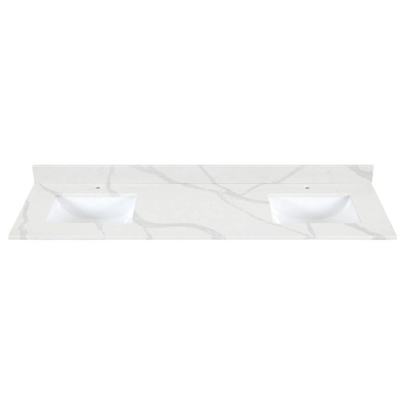 Renovate your bathroom with our elegant bathroom vanity top? Our Arbios quartz countertop marries the timeless allure of Calacatta marble design with all the unbeatable benefits of quartz. Featuring an exclusive unified gray veining that graces both the co