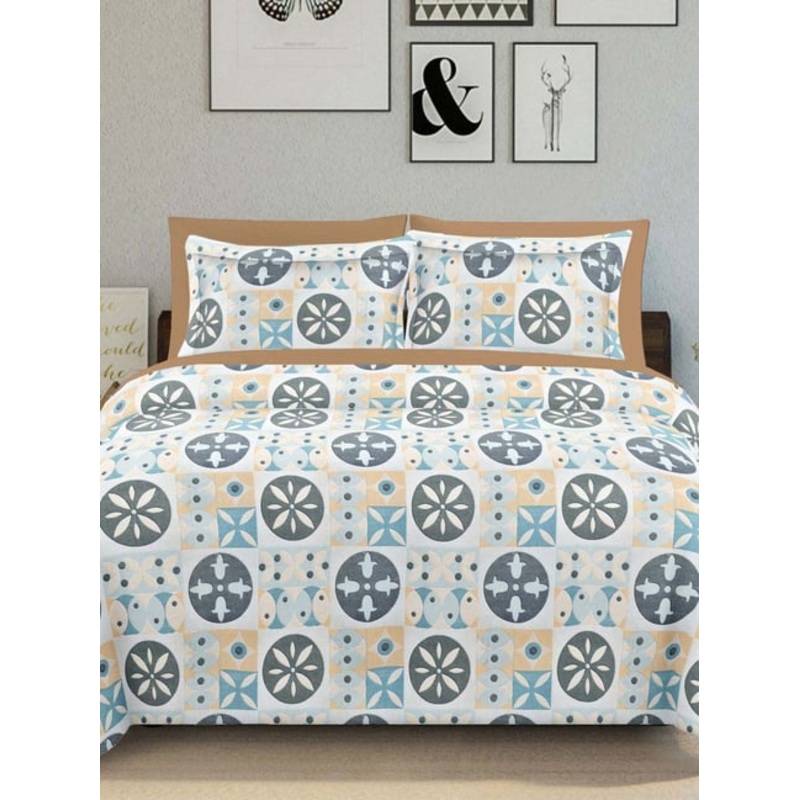 Ariana SARDINIA Aqua Cotton 144 TC King Size Bedsheet With 2 Pillow Covers