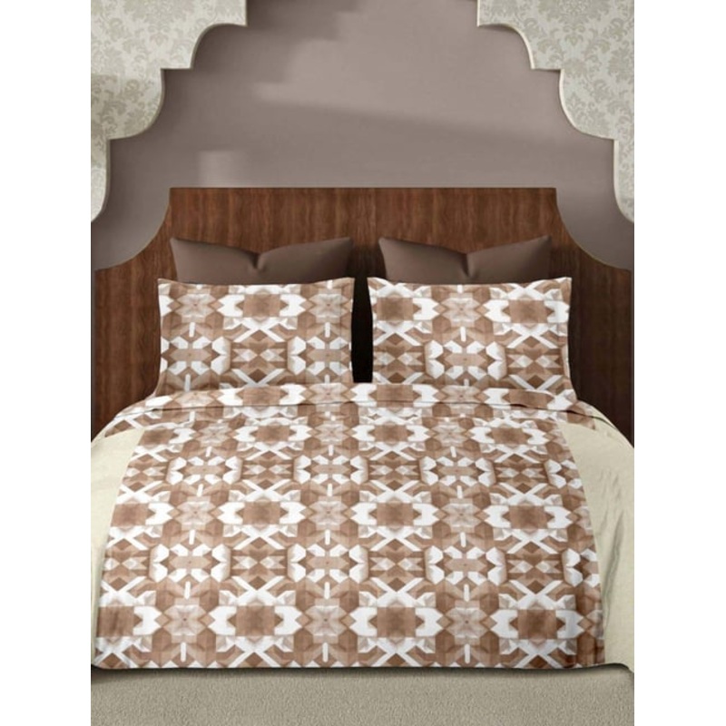 Ariana SORRENTO Coffee Cotton 144 TC Double Size Bedsheet With 2 Pillow Covers
