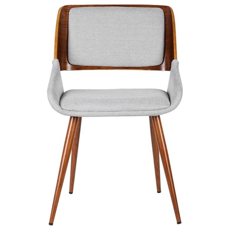The Armen Living Panda Mid-Century Modern Dining Chair in Walnut Wood and Gray Fabric with Metal Legs is a great way to bring the comforts of yesteryear into your modern life. The sleek design of this contemporary marvel combines a softly curved hardwood w