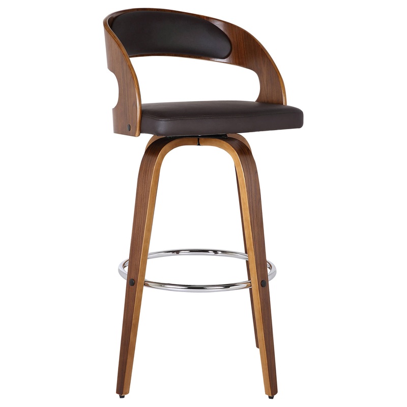 Add Mid-Century Modern design to your home with this Shelly Swivel Barstool. It is elegantly designed with a sturdy 360 degree footrest in carefully crafted in top-quality Walnut wood finish, but also expertly upholstered with Brown Pu upholstery and padde