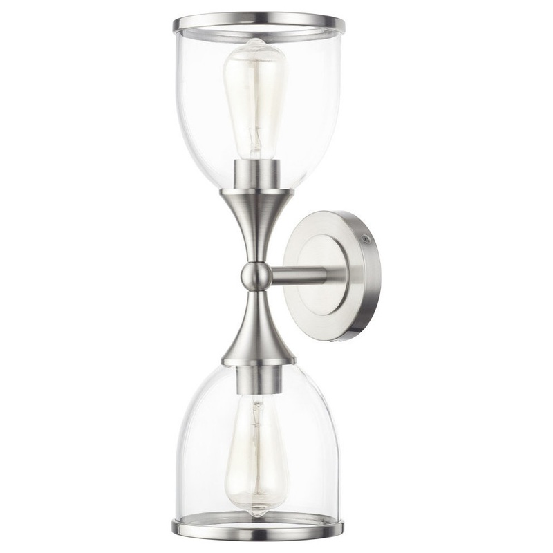 -2 Light Brushed Nickel Vanity Sconce with Mouth Blown Clear Glass -Number of Bulb(s): 2 -Type of Bulb(s): Medium Base -Bulb Wattage: 60 -Bulb(s) Included: NModel # (MPN)14132-91Product ID205644652Manufactured ByLivex Lighting Inc.Sold ByHouzzSize/WeightW