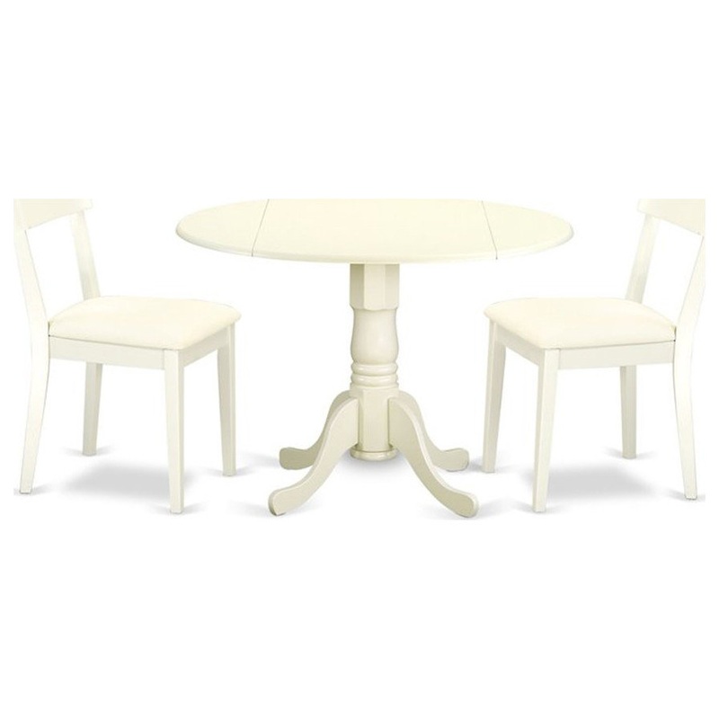 A double-drop leaf kitchen dining table set like this is specially designed to create that compact look, which is well suited for smaller dining spaces. Produced out of Asian hardwood, the round small kitchen table set is finished in a comforting linen white finish. This kitchen table and 2 matching chairs match up properly in almost any typical dining area or dining-room. Its relatively small dimensions makes this set an excellent choice for first-time buyers or those with smaller homes.