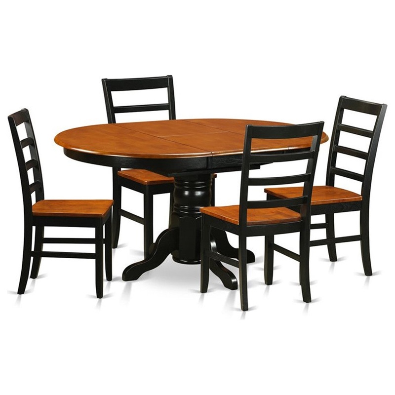 -This dining table set includes 4 wood chairs and a stunning butterfly leaf dining table that will enhance the attractiveness of any dining room with their ageless style