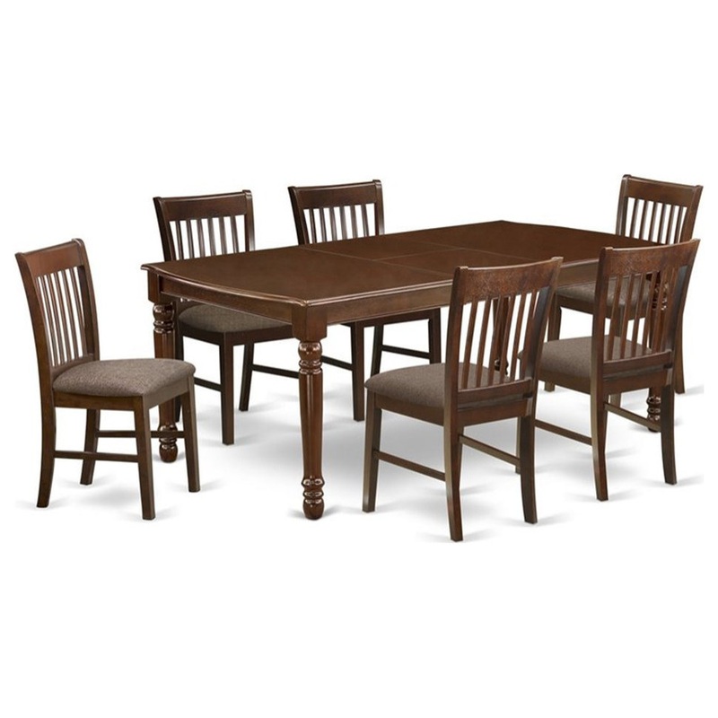 The Atlin Designs dining set facilitates an affectionate family feeling. A comfortable and classy Mahogany color offers any dining area a relaxing and friendly feel with the rectangular kitchen table. This well-designed and comfortable dining table may be used for hours at a time. This wonderful smooth Mahogany dinette table makes a really good addition for all kitchen space and corresponds all sorts of dining-room concepts. The dinette table is created from prime quality rubber wood known as Asian Hardwood. No heat treated pressured wood like MDF, particle board or veneer top fabricated. The stunning Atlin Designs dining chairs offer solid wood top to get a sophisticated, traditional appearance. Lovely kitchen chairs finished in Mahogany with your choice of chair seat in Linen seat to suit preference and excellent style. The dining chairs add elegance and class to any place you have placed them. The frame of the dining chairs are engineered to offer a great amount of comfort to your spine and thus reduce the chances of back pain. The standard shape, size and design makes the dining area significantly attractive. This contemporary, budget friendly, durable and comfortable dining set can be good choice if you are looking for a great dining time experience with family and friends.