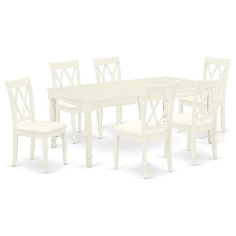 Quality is made attainable with this exclusive Atlin Designs dinette set includes a rectangular dinette table and six kitchen chairs. The dining table can fit maximum of 8 people in the dining area. The table’s 4 straight leg support brings a simple and breezy style to any space, making it incredibly easy to incorporate into any dining room. The Kitchen table includes a built-in 18 inch self-storage expansion leaf which can be stored right beneath table the top. The wooden table is created from prime quality rubber wood known as Asian Hardwood. No heat treated pressured wood like MDF, particle board or veneer top fabricated. Slender Double X back dining chairs present fashionable and cozy seating, with Linen seats finished in rich Linen White which let you enjoy a nice and trendy dining experience. The frame of the kitchen chairs are engineered to offer a great amount of comfort to your spine and thus reduce the chances of back pain. The standard shape, size and design makes the dining area significantly attractive. This budget friendly, durable and comfortable dinette set can be good choice if you are looking for a great dining time experience with your family or friends.
