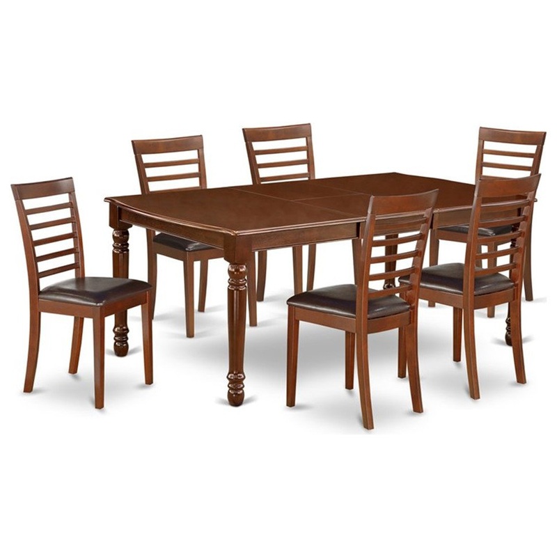 The Atlin Designs dining set facilitates an affectionate family feeling. A comfortable and classy Mahogany color offers any dining area a relaxing and friendly feel with the rectangular kitchen table. This well-designed and comfortable dining table may be used for hours at a time. This wonderful smooth Mahogany dinette table makes a really good addition for all kitchen space and corresponds all sorts of dining-room concepts. The dinette table is created from prime quality rubber wood known as Asian Hardwood. The traditional style throughout the dinette chair backs give a sense of aesthetic interest to your kitchen area whilst joining together seamlessly vast assortment of decor and decor trends. This amazing Mahogany kitchen chair is appropriate for private household get together and holiday dinners. Kitchen dining chairs are available with faux leather seats to suit taste and desired style. The frame of the dining chairs are engineered to offer a great amount of comfort to your spine and thus reduce the chances of back pain. The durable faux leather seat does not retain moisture, will last a long time and can usually be wiped clean with a rag and warm water easily. The standard shape, size and design makes the dining area significantly attractive. This contemporary, budget friendly, durable and comfortable dining set can be good choice if you are looking for a great dining time experience with family and friends.