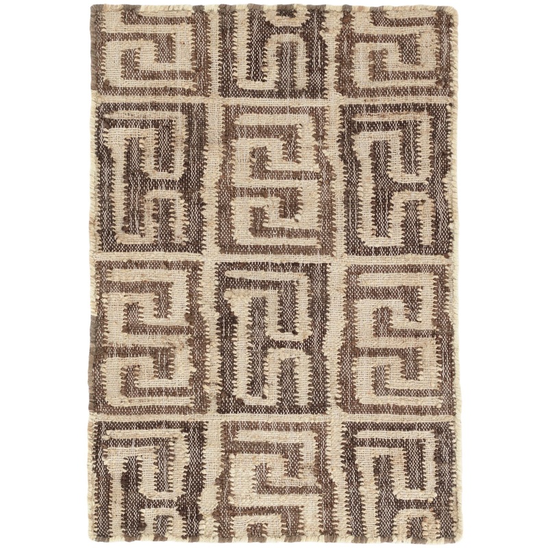 In her latest capsule collection, Annie’s friend and collaborator Bunny Williams was inspired by the unique geometric Kuba weaving of central Africa. The sacred Kuba designs are mathematical and rhythmic in vegetable-dyed earth tones and evolved from a number of techniques featuring flat weaving and cut pile, with patchwork, embroidery, and appliqu. The Auricula dhurrie weave rug has a natural jute greek key-like motif woven onto alternating rectangles of brown and natural. Translated with hard working jute fiber, this modern and timeless rug is sophisticated and practical, especially for high traffic areas.