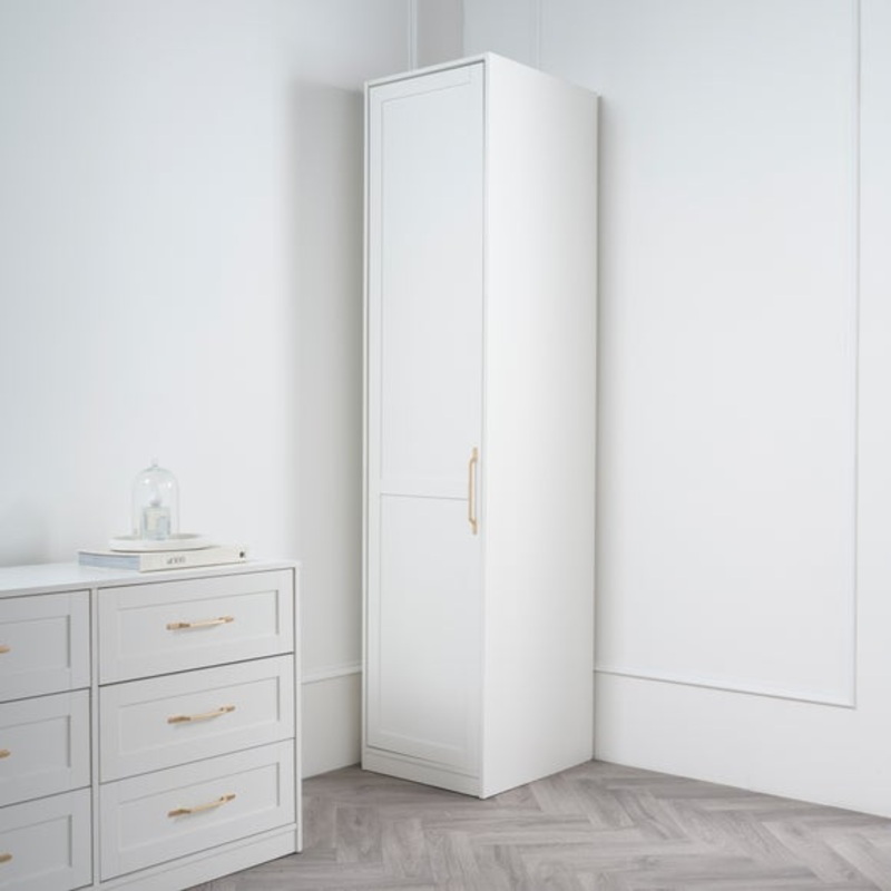 Single wardrobeExtra tallInternal shelfShaker styleBrushed brass handlesIdeal for when space is in short supply, this single wardrobe will provide ample storage for all your items whilst lending style to the space. In a classic shaker design and with a whi