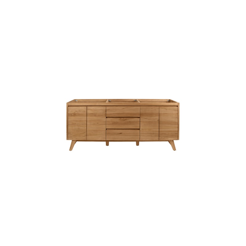 Inspired by mid-century modern console design, the Coventry Collection from Avanity features solid teak construction with minimal ornamentation. The 72 in. natural teak Coventry features soft-close doors and drawers, sturdy and stylish splayed legs, and an