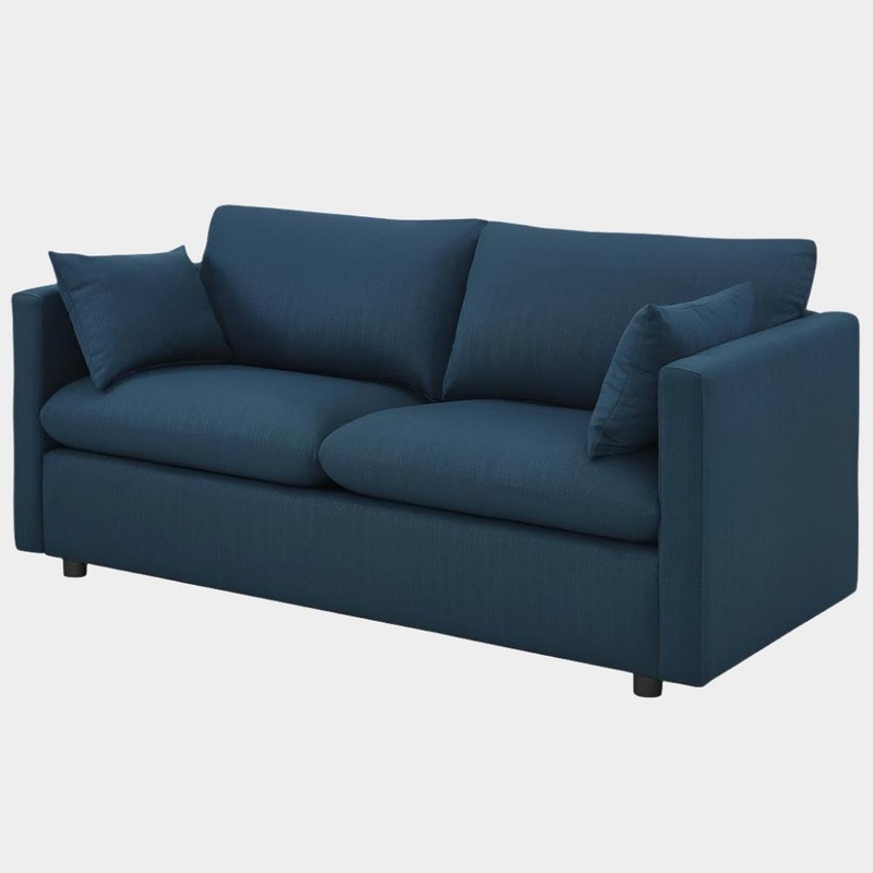 Lounge in style with Avery. A versatile addition to a family room, apartment, office, or small living space, Avery is a cozy modern sofa made with dense foam padding, and upholstered in soft polyester fabric. Rounded cushion corners and complementing accent pillows grant this sofa a contemporary look thats echoed by its calming color, streamlined profile, and subtle wood legs. Say goodbye to the days of hauling heavy furniture. Avery offers modern-day convenience as it ships directly to your home or apartment in a portable, compact box. With a casual yet tailored aesthetic, this living room sofa easily unpacks to become a favorite lounge spot in your home. Sofa Weight Capacity: 1102 lbs.
