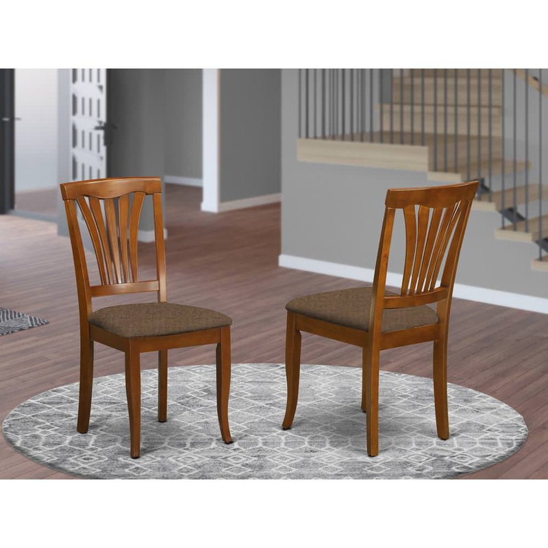 Avon Chair for dining room with Microfiber Upholstered Seat – Saddle Brow Finish. High-caliber lounge chairs created all very solid Asian wood. No MDF, heat treated wood, particle aboard or venner used. Includes a vertical slatted back. Gently arced